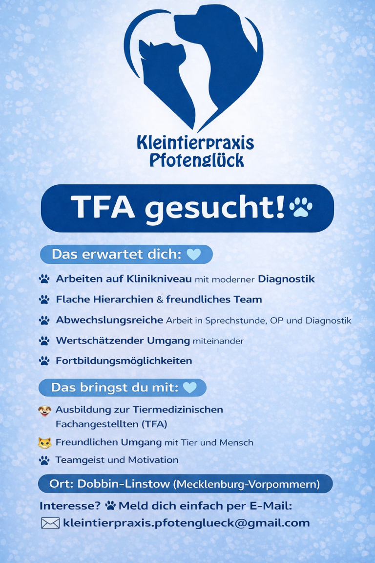 Zur Verstärkung unseres Teams suchen wir eine tiermedizinische Fachangestellte (m/w/d).